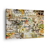 Bild auf Leinwand - Leinwandbild - Eine Collage aus Zeitungs- und Plakatfragmenten im künstlerischen Stil. - 70x50cm - Ach, es passiert... - Moderne Wanddekoration für Wohnzimmer und Schlafzimmer ARTTOR