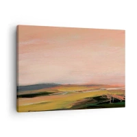 Bild auf Leinwand - Leinwandbild - Eine Landschaft in Rosa- und Goldtönen - 70x50cm - In Rosatönen - Moderne Wanddekoration für Wohnzimmer und Schlafzimmer ARTTOR