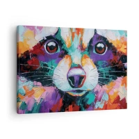 Bild auf Leinwand - Leinwandbild - Ein farbenfrohes Porträt eines Waschbären im Stil der expressiven Malerei. - 70x50cm - Nur gute Emotionen - Moderne Wanddekoration für Wohnzimmer und Schlafzimmer ARTTOR