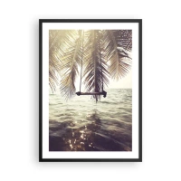 Poster in einem schwarzem Rahmen - Strand mit Palmen und goldenem Sonnenuntergang - 50x70cm - Ewiger Sommer, immer Urlaub - Moderne Wanddekoration für Wohnzimmer und Schlafzimmer ARTTOR