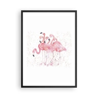 Poster in einem schwarzem Rahmen - Eine Gruppe rosa Flamingos auf weißem Hintergrund - 50x70cm - Rosa Ensemble - Moderne Wanddekoration für Wohnzimmer und Schlafzimmer ARTTOR