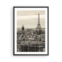 Poster in einem schwarzem Rahmen - Panorama von Paris mit dem Eiffelturm in Sepiatönen - 50x70cm - Über den Dächern von Paris - Moderne Wanddekoration für Wohnzimmer und Schlafzimmer ARTTOR