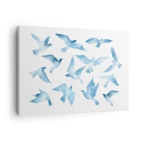 Bild auf Leinwand - Leinwandbild - Ein subtiles Aquarell, das fliegende Vögel darstellt - 70x50cm - Blaue Vögel - Moderne Wanddekoration für Wohnzimmer und Schlafzimmer ARTTOR