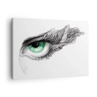 Bild auf Leinwand - Leinwandbild - Künstlerisches Auge mit grüner Iris und Zeichnungsdetails - 70x50cm - Schön und bereit zum Angriff - Moderne Wanddekoration für Wohnzimmer und Schlafzimmer ARTTOR