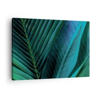 Bild auf Leinwand - Leinwandbild - Nahaufnahme von Palmblättern in natürlichen Grüntönen - 70x50cm - Fans in den Tropen - Moderne Wanddekoration für Wohnzimmer und Schlafzimmer ARTTOR