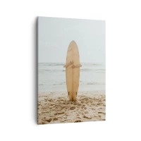 Bild auf Leinwand - Leinwandbild - Eine Meereswelle, die gegen den Sandstrand prallt - 50x70cm - Zurückkehrende Welle - Moderne Wanddekoration für Wohnzimmer und Schlafzimmer ARTTOR