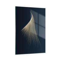 Glasbild - Bild auf glas - Eine goldene Linie, die einem Flügel auf einem marineblauen Hintergrund ähnelt - 50x70cm - Wie das Haar eines Engels - Moderne Wanddekoration für Wohnzimmer und Schlafzimmer ARTTOR