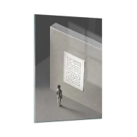 Glasbild - Bild auf glas - Kind in einem Labyrinth mit einem Rätselsymbol - 50x70cm - Aber wo bin ich? - Moderne Wanddekoration für Wohnzimmer und Schlafzimmer ARTTOR