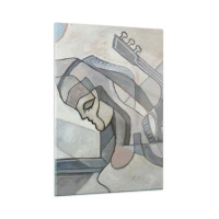 Glasbild - Bild auf glas - Eine abstrakte Szene mit zwei Figuren im kubistischen Stil. - 50x70cm - Mosaik aus Geist und Materie - Moderne Wanddekoration für Wohnzimmer und Schlafzimmer ARTTOR