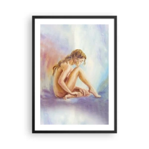 Poster in einem schwarzem Rahmen - Eine Frau in Gedanken versunken vor einem pastellfarbenen Hintergrund - 50x70cm - Akt der Jugend - Moderne Wanddekoration für Wohnzimmer und Schlafzimmer ARTTOR
