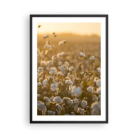 Poster in einem schwarzem Rahmen - Ein Baumwollfeld im warmen Licht der untergehenden Sonne - 50x70cm - Fluffiges Feld - Moderne Wanddekoration für Wohnzimmer und Schlafzimmer ARTTOR