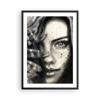 Poster in einem schwarzem Rahmen - Porträt einer Frau im monochromen Stil - 50x70cm - Wilde Schönheit - Moderne Wanddekoration für Wohnzimmer und Schlafzimmer ARTTOR