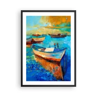Poster in einem schwarzem Rahmen - Bunte Boote auf dem Wasser im impressionistischen Stil - 50x70cm - In der südlichen Bucht - Moderne Wanddekoration für Wohnzimmer und Schlafzimmer ARTTOR