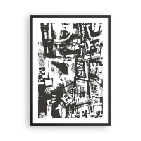 Poster in einem schwarzem Rahmen - Schwarz-weiße abstrakte Grafik mit geometrischen Formen - 50x70cm - Ordnung oder Chaos? - Moderne Wanddekoration für Wohnzimmer und Schlafzimmer ARTTOR