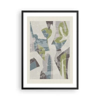 Poster in einem schwarzem Rahmen - Abstrakte Figuren in Grün- und Blautönen - 50x70cm - Komposition hinter dem Glas - Moderne Wanddekoration für Wohnzimmer und Schlafzimmer ARTTOR