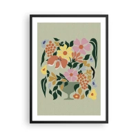Poster in einem schwarzem Rahmen - Ein buntes Blumenarrangement in einer dekorativen Vase auf grünem Hintergrund - 50x70cm - Strauß voller Leben - Moderne Wanddekoration für Wohnzimmer und Schlafzimmer ARTTOR