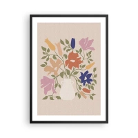 Poster in einem schwarzem Rahmen - Ein bunter Blumenstrauß in einer hellen Vase auf beigem Hintergrund - 50x70cm - Zartes Bouquet - Moderne Wanddekoration für Wohnzimmer und Schlafzimmer ARTTOR