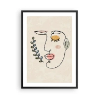 Poster in einem schwarzem Rahmen - Minimalistisches Linienporträt einer Frau auf beigem Hintergrund - 50x70cm - Frieden ist gefunden - Moderne Wanddekoration für Wohnzimmer und Schlafzimmer ARTTOR