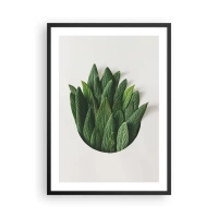 Poster in einem schwarzem Rahmen - Blätter in einer künstlerischen Komposition auf weißem Hintergrund - 50x70cm - Ungebremste Neugier - Moderne Wanddekoration für Wohnzimmer und Schlafzimmer ARTTOR