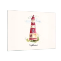 Glasbild - Bild auf glas - Aquarell Leuchtturm mit der Aufschrift Lighthouse - 70x50cm - Das Wetter ringsum ist immer gut - Moderne Wanddekoration für Wohnzimmer und Schlafzimmer ARTTOR