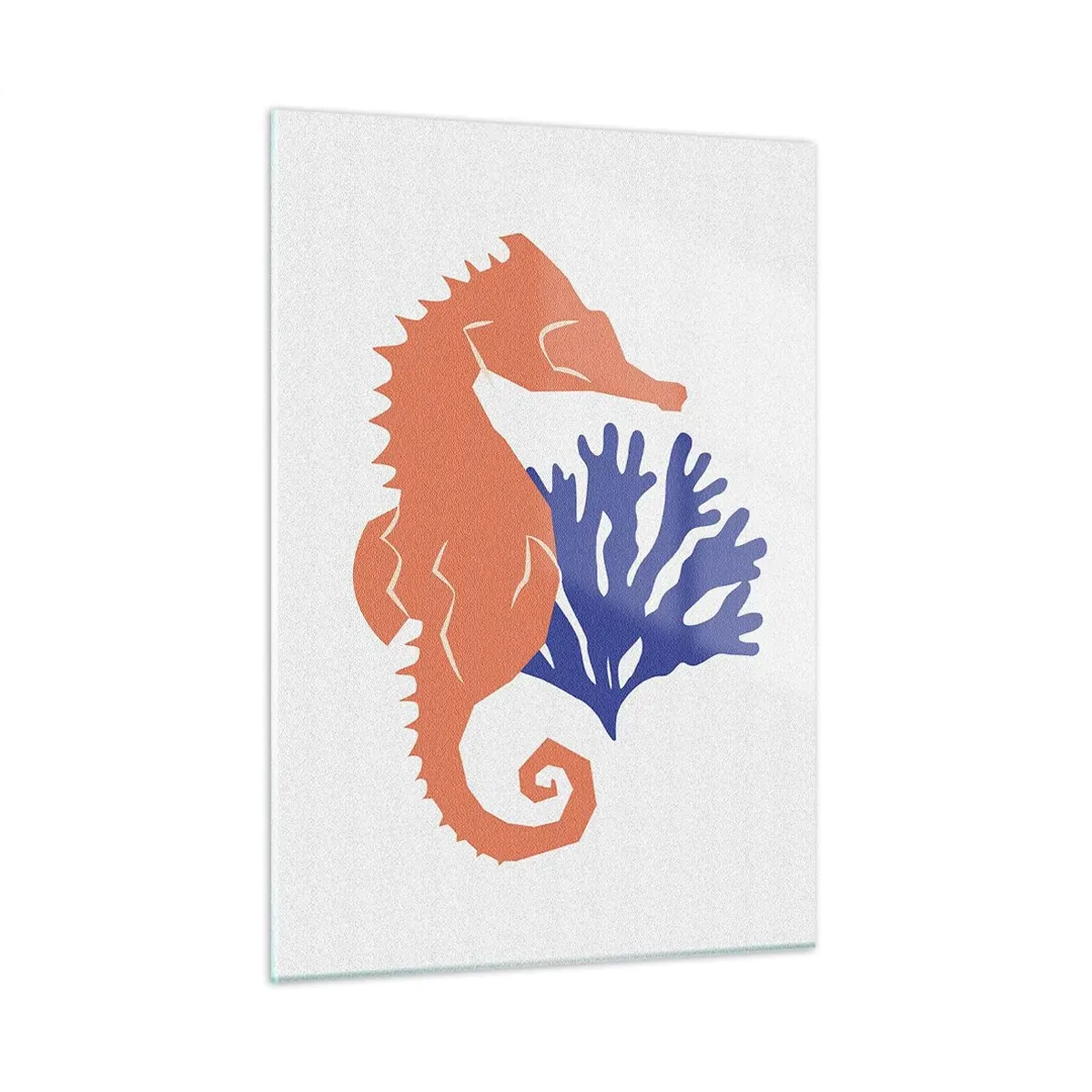 Glasbild - Bild auf glas - Ein buntes Boot am Strand mit türkisfarbenem Meer im Hintergrund - 50x70cm - An seinem Platz - Moderne Wanddekoration für Wohnzimmer und Schlafzimmer ARTTOR
