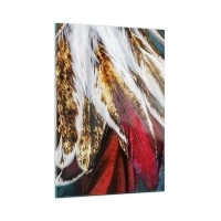 Glasbild - Bild auf glas - Bunte Federn in einer reichen Farbpalette mit einer ausgeprägten Textur - 50x70cm - Geheimnisse des Fliegens - Moderne Wanddekoration für Wohnzimmer und Schlafzimmer ARTTOR