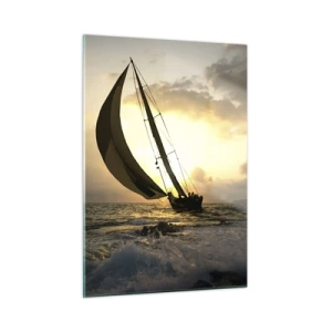 Glasbild - Bild auf glas - Segelboote in stürmischer See bei Sonnenuntergang - 50x70cm - Mit dem Wind und gegen den Wind - Moderne Wanddekoration für Wohnzimmer und Schlafzimmer ARTTOR
