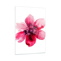 Glasbild - Bild auf glas - Aquarell-Illustration einer roten Blume auf weißem Hintergrund - 50x70cm - Ein nach Karmin duftender Kuss - Moderne Wanddekoration für Wohnzimmer und Schlafzimmer ARTTOR