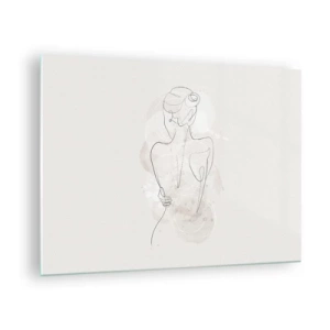 Glasbild - Bild auf glas - Eine zarte Skizze einer Frau auf hellem Hintergrund - 70x50cm - Wie ein sensibles Instrument - Moderne Wanddekoration für Wohnzimmer und Schlafzimmer ARTTOR