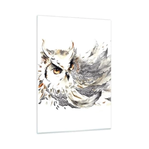 Glasbild - Bild auf glas - Eine Eule mit kunstvollen Federn in Orange- und Grautönen. - 50x70cm - Sie kam aus der Welt der Magie - Moderne Wanddekoration für Wohnzimmer und Schlafzimmer ARTTOR
