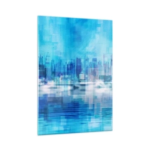 Glasbild - Bild auf glas - Ein modernes Stadtpanorama in Blautönen - 50x70cm - In Blau ertrunken - Moderne Wanddekoration für Wohnzimmer und Schlafzimmer ARTTOR
