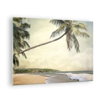 Glasbild - Bild auf glas - Tropischer Strand mit Palmen und Wellen - 70x50cm - Tropischer Traum - Moderne Wanddekoration für Wohnzimmer und Schlafzimmer ARTTOR
