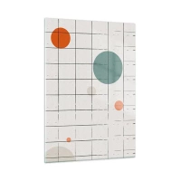 Glasbild - Bild auf glas - Bunte Kreise auf einem geometrischen Raster aus dünnen Linien - 50x70cm - Gefangen. Wir oder sie? - Moderne Wanddekoration für Wohnzimmer und Schlafzimmer ARTTOR