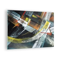 Glasbild - Bild auf glas - Abstrakte Komposition mit dynamischen Linien und Farben - 70x50cm - In großer Eile - Moderne Wanddekoration für Wohnzimmer und Schlafzimmer ARTTOR