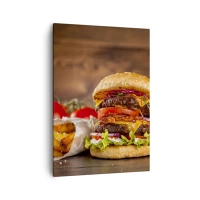 Bild auf Leinwand - Leinwandbild - Appetitlicher Burger mit Extras - 50x70cm - Die verbotene Frucht - Moderne Wanddekoration für Wohnzimmer und Schlafzimmer ARTTOR