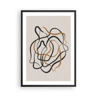 Poster in einem schwarzem Rahmen - Abstrakte verschlungene Linien in Schwarz und Gold auf Beige - 50x70cm - Alles ging schief - Moderne Wanddekoration für Wohnzimmer und Schlafzimmer ARTTOR