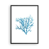 Poster in einem schwarzem Rahmen - Blaue Koralle im Aquarellstil auf weißem Hintergrund - 50x70cm - Nautisches Filigran - Moderne Wanddekoration für Wohnzimmer und Schlafzimmer ARTTOR