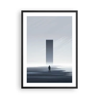 Poster in einem schwarzem Rahmen - Eine minimalistische Szene mit einem mysteriösen Monolithen in kalten Tönen. - 50x70cm - Chance oder Bedrohung? - Moderne Wanddekoration für Wohnzimmer und Schlafzimmer ARTTOR