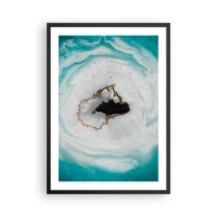 Poster in einem schwarzem Rahmen - Ein abstraktes Motiv in Türkis- und Weißtönen mit einem Hauch von Gold - 50x70cm - Nach Innen eindringen - Moderne Wanddekoration für Wohnzimmer und Schlafzimmer ARTTOR