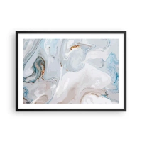 Poster in einem schwarzem Rahmen - Abstraktes Muster in Weiß- und Blautönen - 70x50cm - Blau schlängelt sich unter dem Weiß - Moderne Wanddekoration für Wohnzimmer und Schlafzimmer ARTTOR