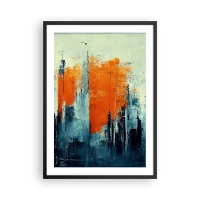 Poster in einem schwarzem Rahmen - Abstraktes Stadtpanorama in Orange- und Marineblautönen - 50x70cm - Moderne Landschaft - Moderne Wanddekoration für Wohnzimmer und Schlafzimmer ARTTOR