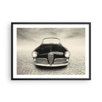 Poster in einem schwarzem Rahmen - Ein Oldtimer auf einem Kopfsteinpflasterplatz im monochromen Stil - 70x50cm - Man muss mich einfach lieben - Moderne Wanddekoration für Wohnzimmer und Schlafzimmer ARTTOR