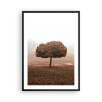 Poster in einem schwarzem Rahmen - Ein einsamer Baum im Herbstnebel - 50x70cm - Nach einem anstrengenden Sommer - Moderne Wanddekoration für Wohnzimmer und Schlafzimmer ARTTOR