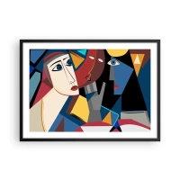 Poster in einem schwarzem Rahmen - Kubistische Gesichter in intensiven Farben - 70x50cm - Gespräch zwischen Kubisten - Moderne Wanddekoration für Wohnzimmer und Schlafzimmer ARTTOR
