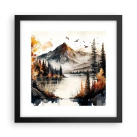 Poster in einem schwarzem Rahmen - Goldener Herbst in den Bergen - 30x30 cm
