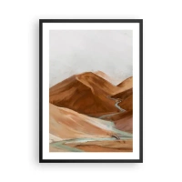 Poster in einem schwarzem Rahmen - Ein Fluss, der durch braune Berge fließt, eine stilisierte Landschaft - 50x70cm - Zur Quelle - Moderne Wanddekoration für Wohnzimmer und Schlafzimmer ARTTOR