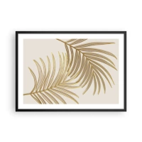 Poster in einem schwarzem Rahmen - Goldene Palmblätter auf hellem Hintergrund im minimalistischen Stil - 70x50cm - Goldene Palme! - Moderne Wanddekoration für Wohnzimmer und Schlafzimmer ARTTOR