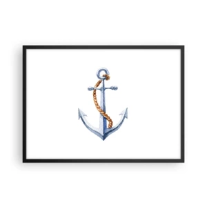Poster in einem schwarzem Rahmen - Anker mit Seil im Aquarellstil - 70x50cm - Ahoi Abenteuer! - Moderne Wanddekoration für Wohnzimmer und Schlafzimmer ARTTOR