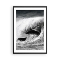 Poster in einem schwarzem Rahmen - Eine kraftvolle Welle in Grautönen - 50x70cm - Wut des Ozeans - Moderne Wanddekoration für Wohnzimmer und Schlafzimmer ARTTOR