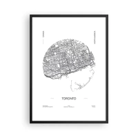 Poster in einem schwarzem Rahmen - Eine minimalistische Schwarz-Weiß-Karte von Toronto - 50x70cm - Anatomie von Toronto - Moderne Wanddekoration für Wohnzimmer und Schlafzimmer ARTTOR